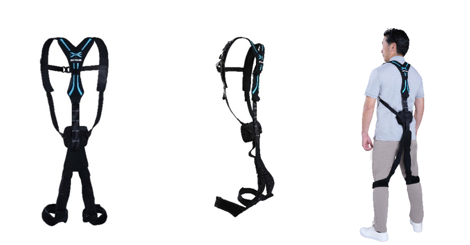 (「マッスルスーツSoft-Power」背面、側面、着用画像)