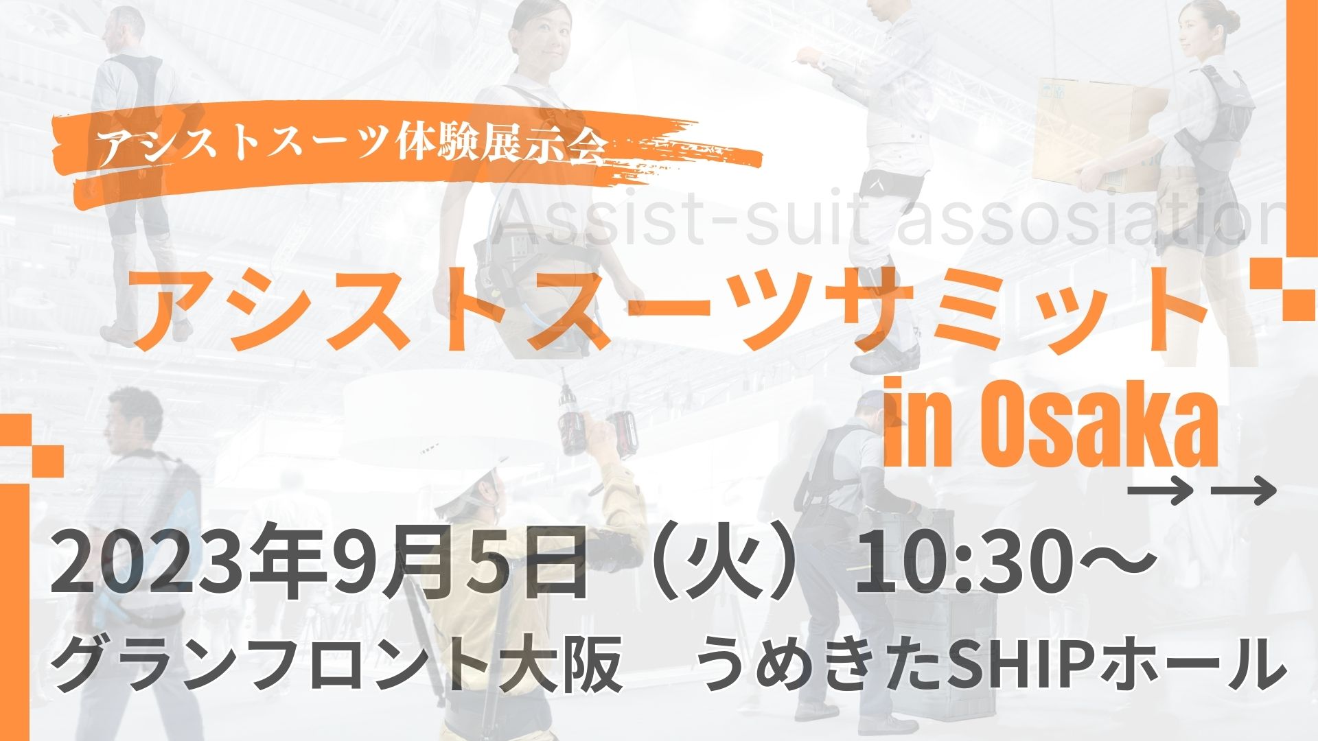 一般社団法人化を記念し、大阪では初となるアシストスーツ関連企業が一堂に集う展示体験会「アシストスーツサミットin Osaka」を、 2023年9月5日(火)に、グランフロント大阪 うめきたSHIPホールにて開催いたします。多種多様なアシストスーツを 1度に体感・導入相談ができるほか、アシストスーツの導入支援を手掛けてこられた、逢坂大輔氏(理学療法士、株式会社シーエフロボタス 代表取締役)の「アシストスーツ導入のポイント」をテーマにした講演、企業における疲労予防の実践をテーマとしたパネルディスカッションがございます。