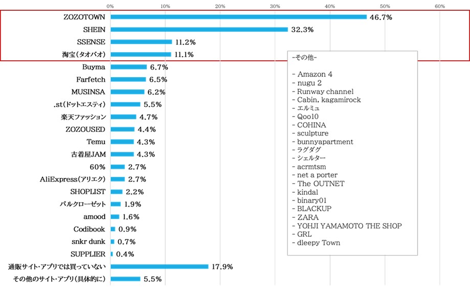 4.ファッションアイテムを購入した通販は「ZOZOTOWN」「SHEIN」に集中。通販の越境も進む。